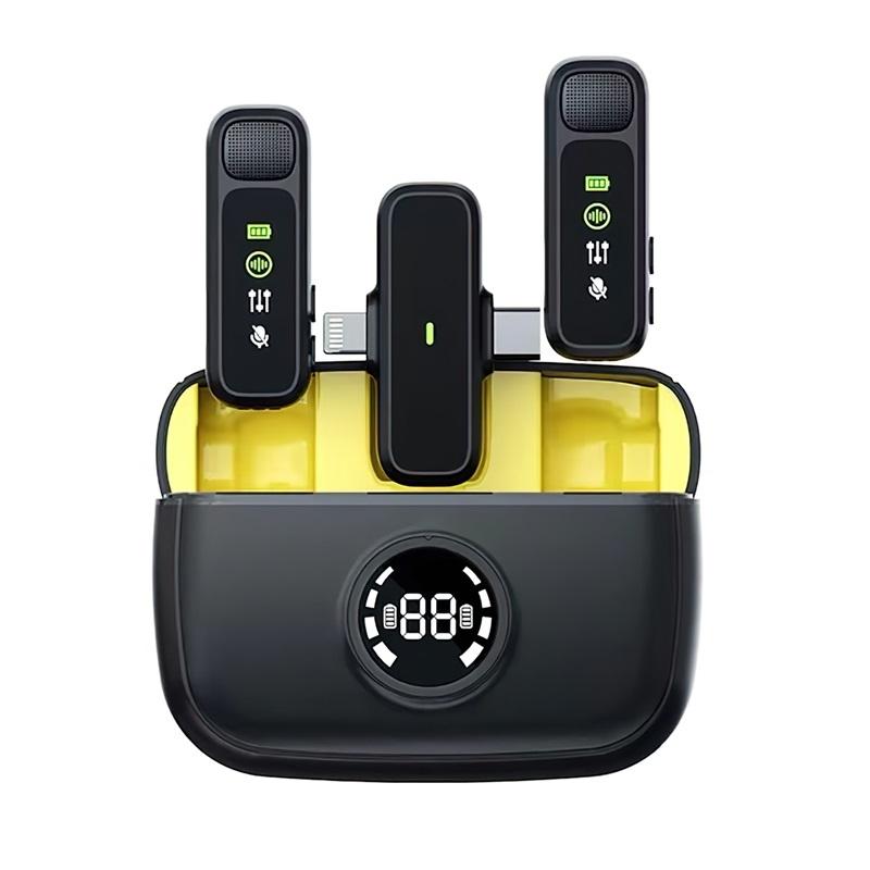 Batteri: 300mAhLaddningsport USB CFrekvens: 20Hz~20KHzPort: USB C+ LightningAvstånd: 30m Max1. En-drag två krage clip mikrofon, innovativ intelligent laddning bin design2. Aktiv brusreducering, supertydlig radio, reverbackompanjemang,...