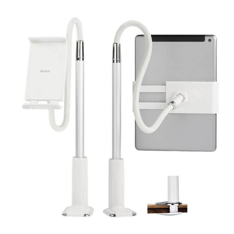 Deltaco Universalstativ för Mobil & Surfplatta – Skrivbordsmontering, Flexibel Arm, 360°