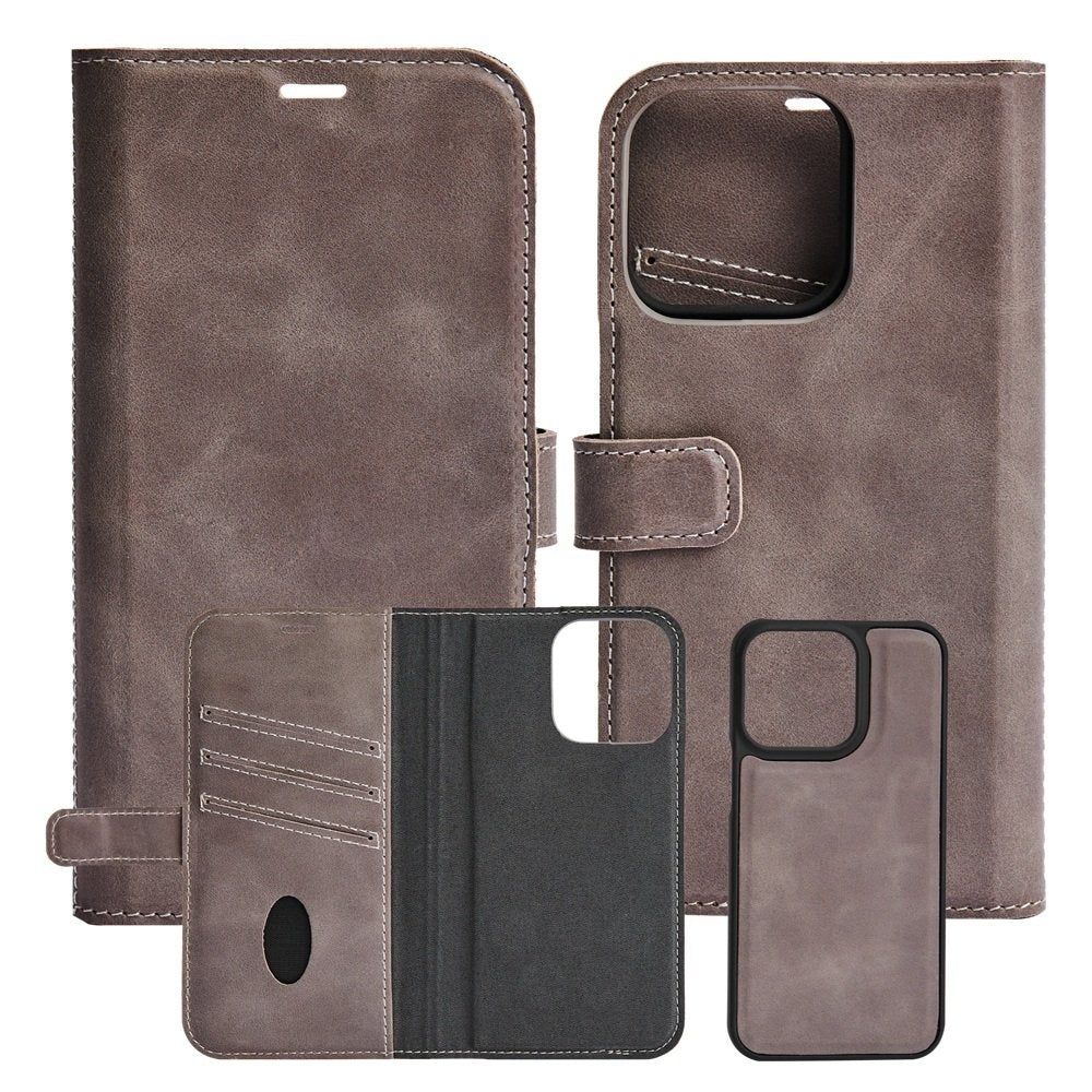 iPhone 13 Mini - Essentials Äkta läder 2-i-1 Löstagbart Plånboksfodral Grå