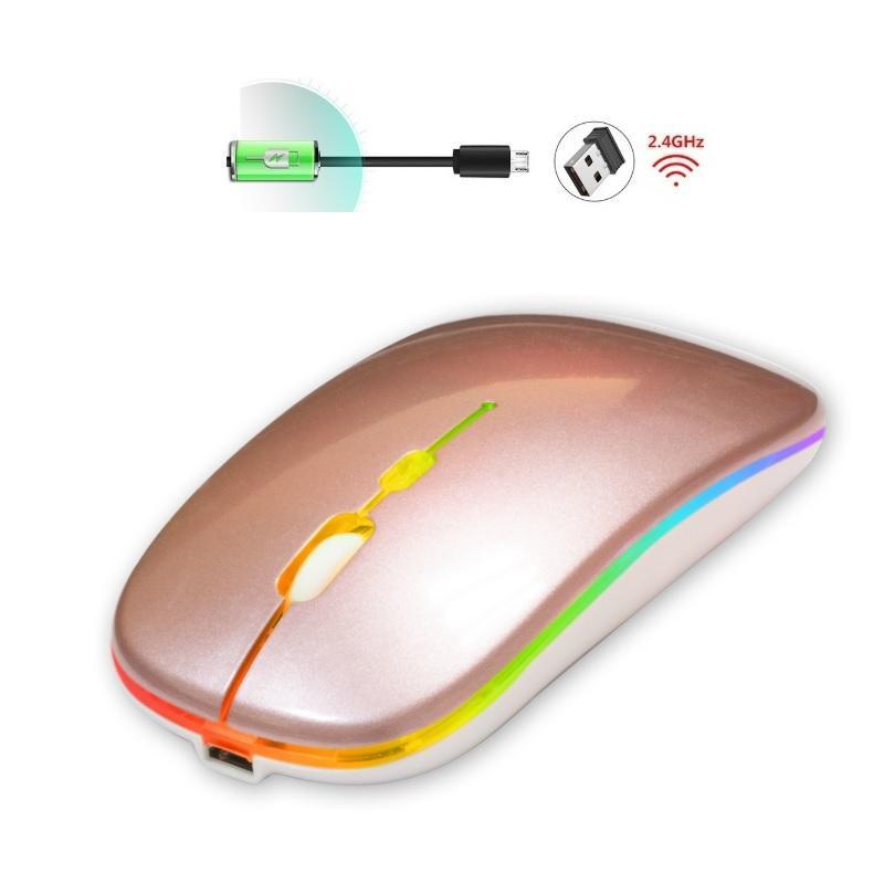 Optisk Trådlös Mini Uppladdningsbar RGB Mus -Roseguld